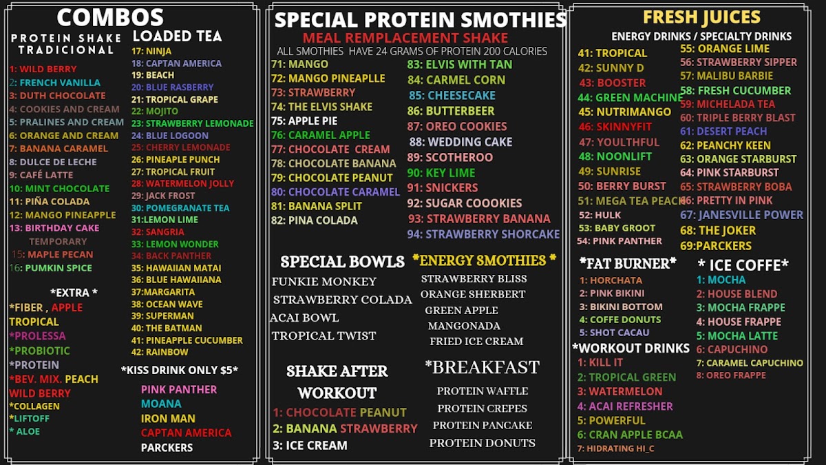 our combos comes with a protein shake with a tea loaded with energy you can call us for more information about the benefits of our products